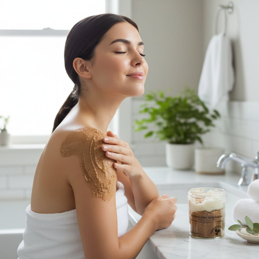 Un scrub sofisticat și revigorant care transformă rutina de îngrijire a pielii într-un moment de relaxare și răsfăț 🌟🛁